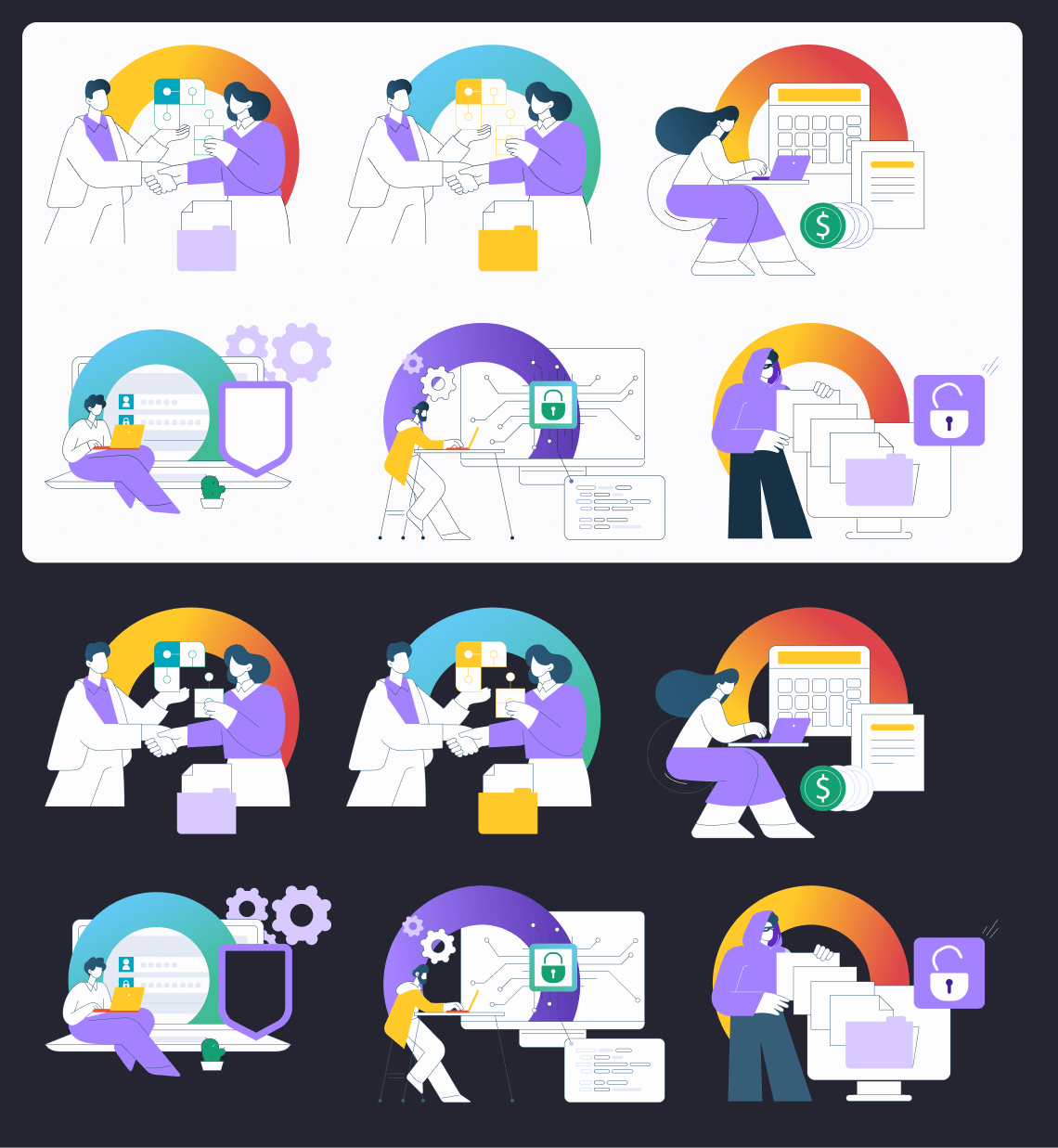 update the illustration style and provide an editable library of scenes, so any designer can create consistent visuals quickly.
